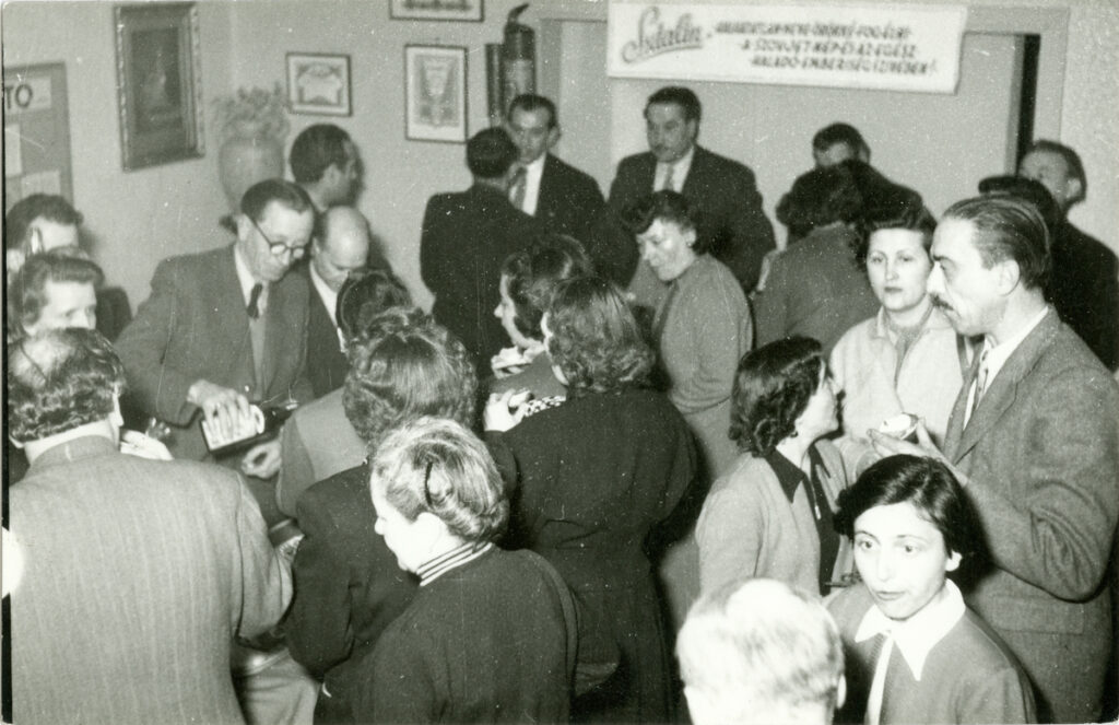Partihangulat a Berzéki műteremben, 1952 körül. Szipál Márton minden képen a hátsó sorban látható
