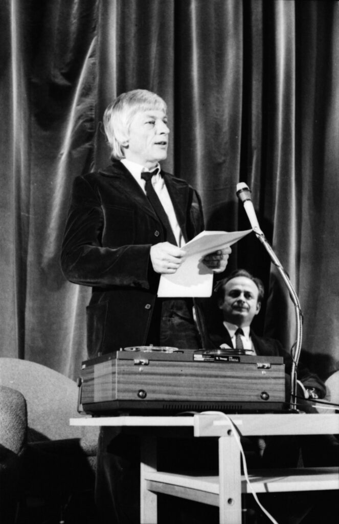 Az est igazi csúcspontja azonban – a szünet utáni második részben – természetesen az volt, amikor Nagy László maga olvasta fel a verseit. A napilapban megjelent beharangozó szövegben ugyan az állt, hogy Kiss Ferenc beszélgetni fog a költővel, de én arra, hogy a színpadon kérdésekre válaszolt volna, nem emlékszem, a felolvasásra s a versekre viszont igen.