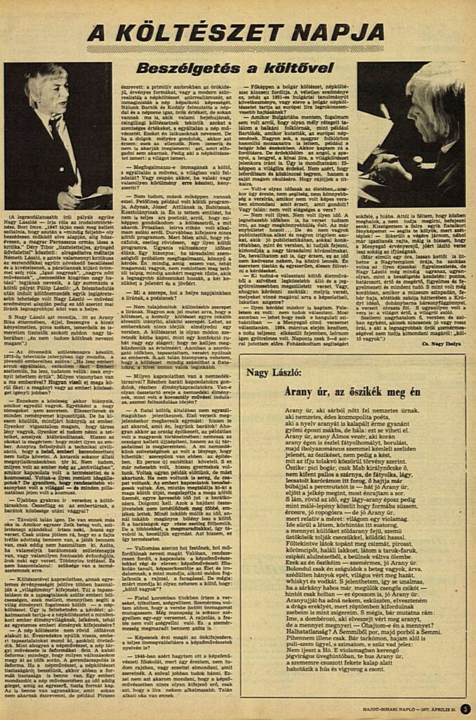 Cs. Nagy Ibolya: Beszélgetés a költővel. Hajdú-bihari Napló, 1977. április 10. 5.
