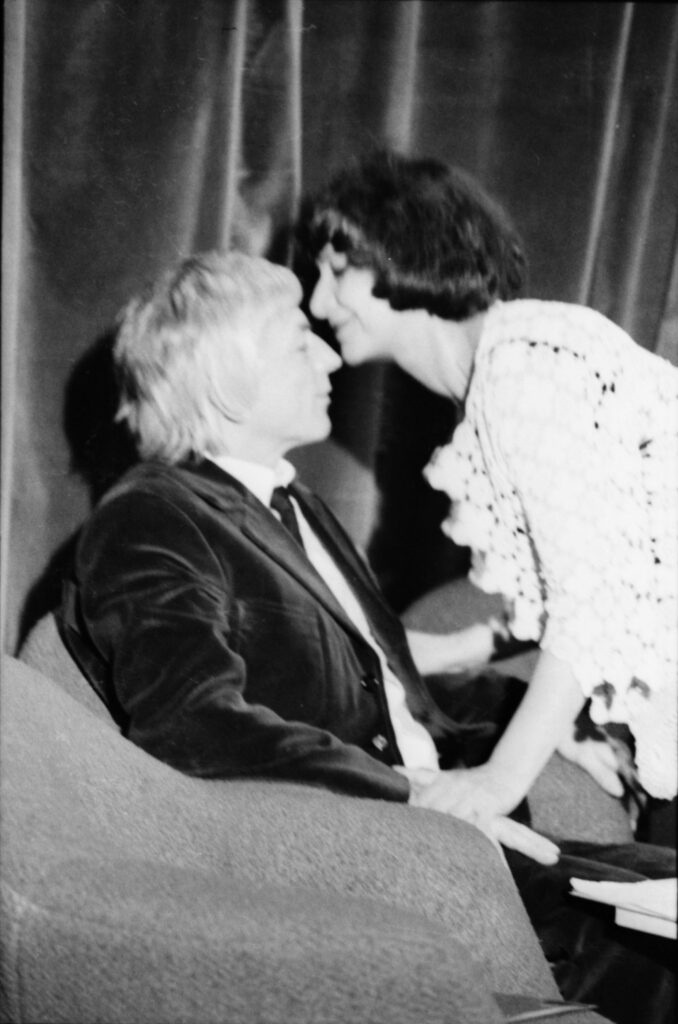 Berek Kati színművésznő versmondás közben és utána, a költővel